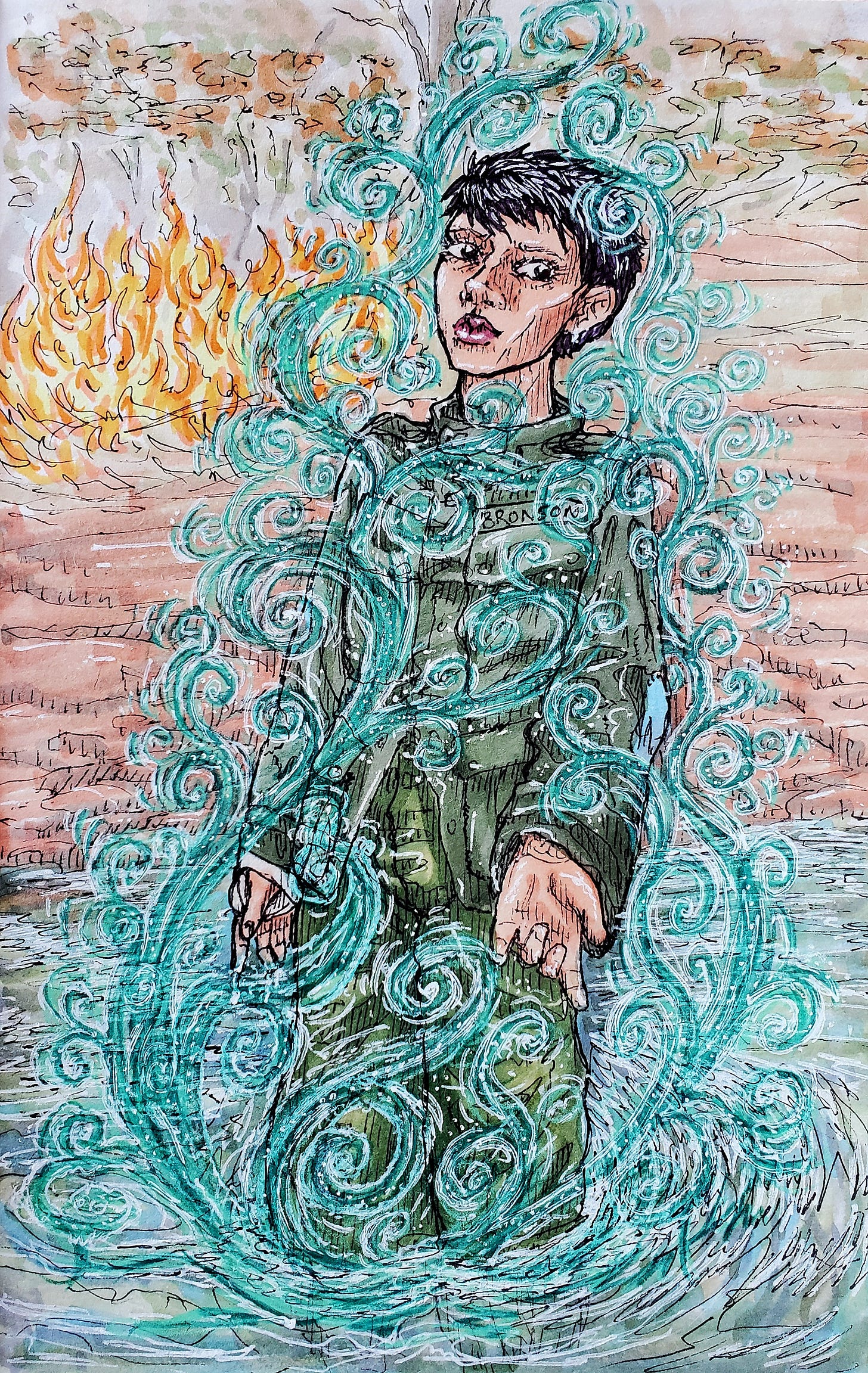 I looked back to the girl now ringed with shoulder-high flame, standing motionless and face gone strangely euphoric at the epicenter of the fire, and shucked my backpack with a single dogged determination: NO.